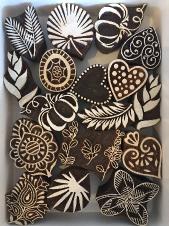 Vi har fået nye fine træblokke. De er i forskellige størrelser og motiver, og priserne ligger fra 20kr - 145kr. De er gode til tryk på både stof og papir og der kan trykkes både med Uniprintfarver og fortykkede Procion MX eller Remazolfarver. Derudover har vi også et udvalg af gamle, traditionelle trykblokke fra Indien og Indonesien. Ring eller mail for priser og yderligere oplysninger. |